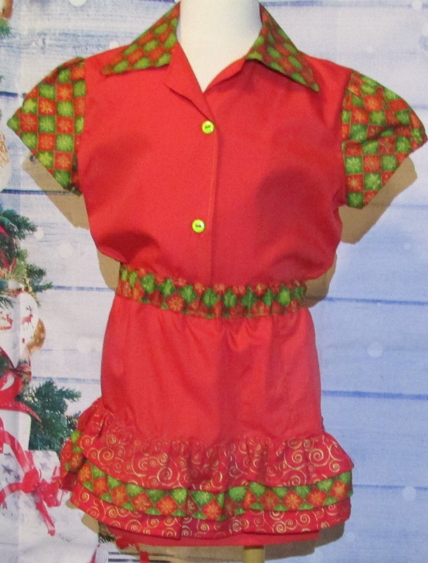 Get ready to sleigh this holiday season with our Christmas Blouse/Skirt 2Pc! The festive red color is complemented by eye-catching green and gold ruffles, making it perfect for any holiday party or event. Don't be a grinch, grab this 2pc set today! 100% Cotton.