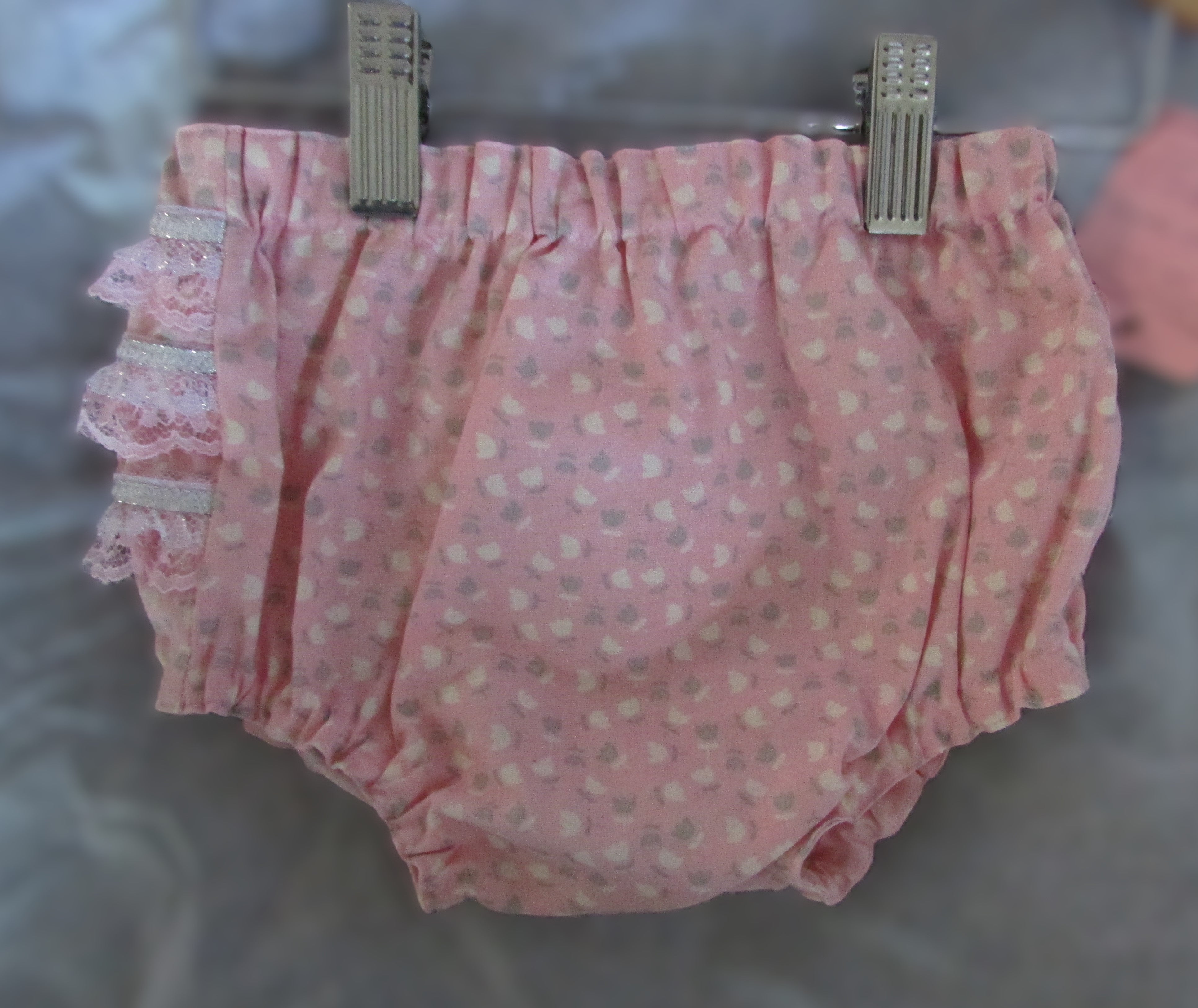 Add a pop of color to your little one's outfit with our Pink and White Diaper Cover! Made with a soft and breathable blend of cotton and polyester, it features a playful flower print and a delicate lace back. Perfect for any stylish baby girl. (No more diaper disasters!)