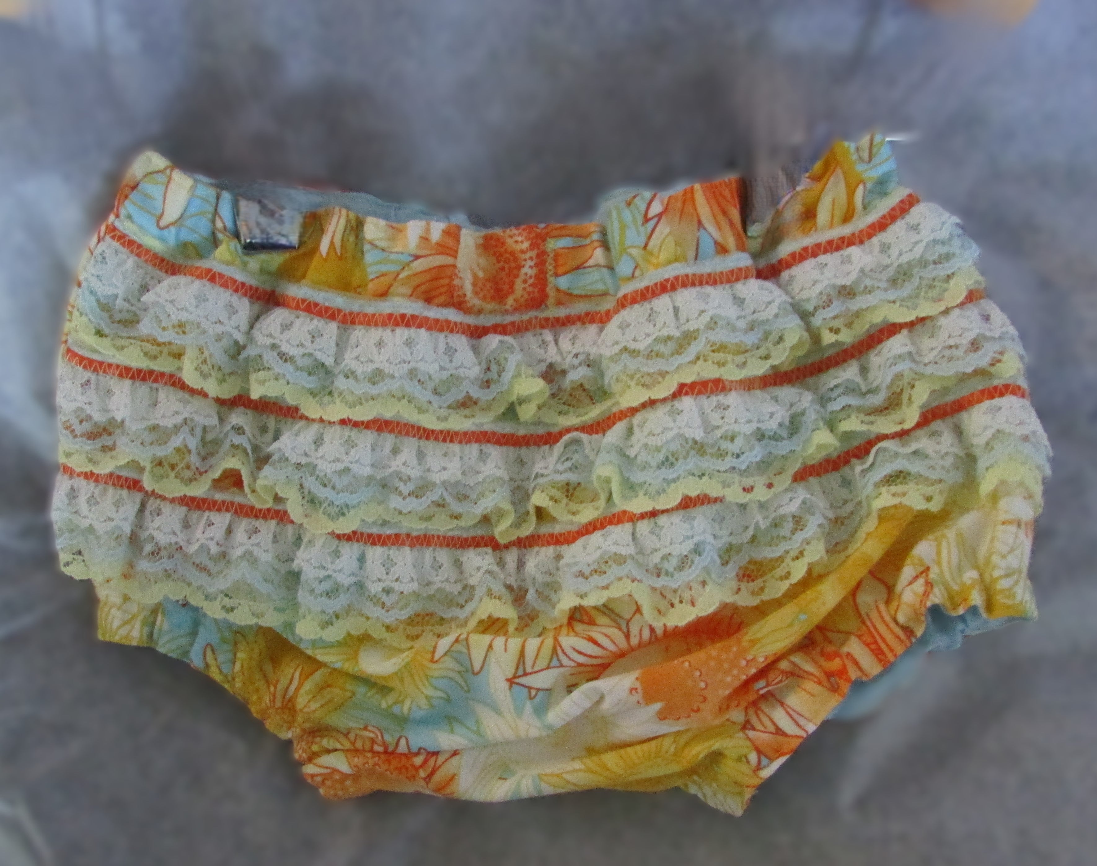 The Sunflower Diaper Cover is the perfect pick for your little girl! With bright orange sunflowers on a blue background, this 100% cotton and polyester lace cover is super cute. Your baby will look like a ray of sunshine in this playful and fun diaper cover!